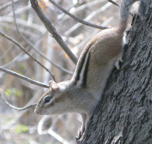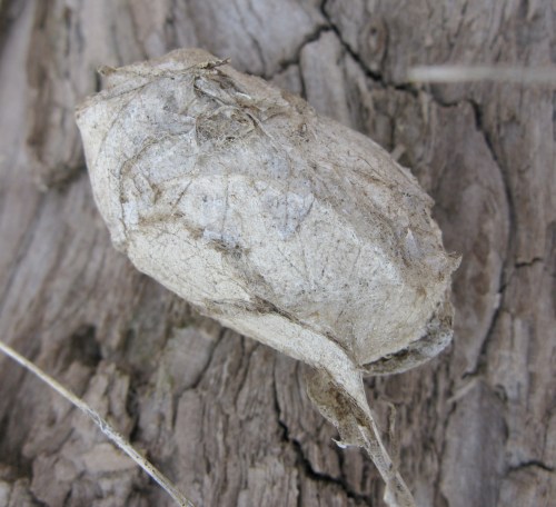 You look up (northern flickers join the mix of birds; male and female downy woodpeckers follow each other), you look down. The old leaves, all gray, masses of sweetgum pods, and what’s this?