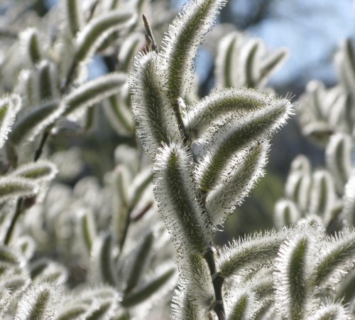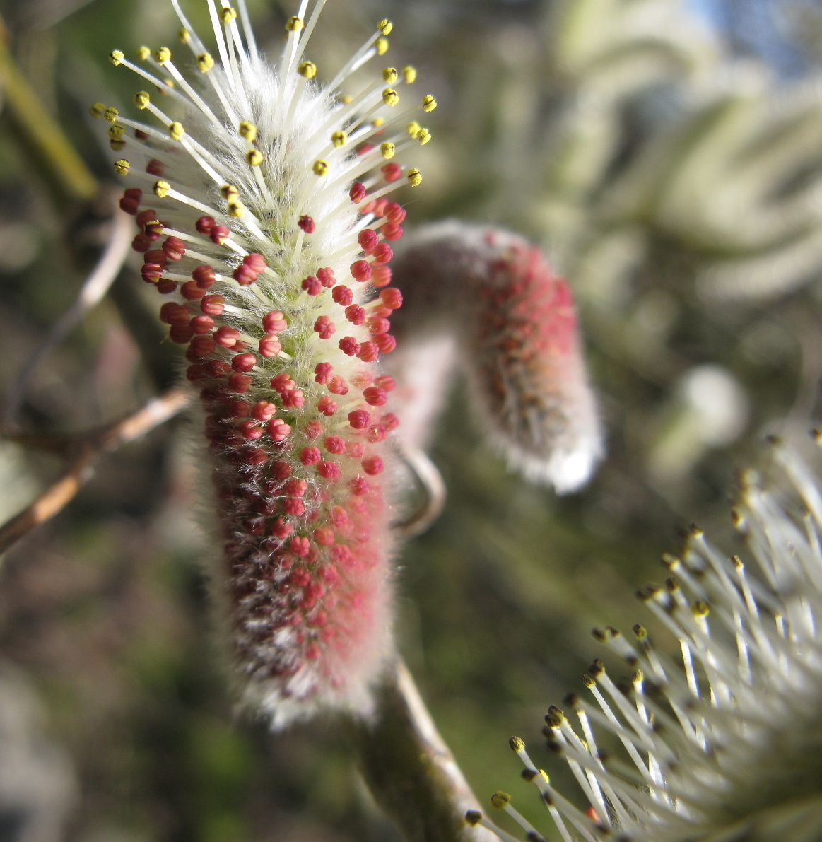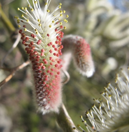 Gerry at Global Swarming has some wonderful shots of honey bees working the red-gold pussy willow (Salix gracilistyla) at the Brooklyn Botanic Garden. I spent some time there on Saturday. (My camera battery passed away before I got any “action” shots.) This species of pussy willow, native to Japan & Korea, was one of the few things in bloom.