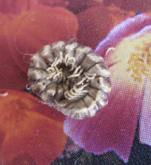 So this one looks like a millipede. Note that there are two sets of legs to most of the individual body segments, a characteristic of the millipedes. (Most species have fewer than 100 legs, even though their name, as you probably remember from school, means “1000 feet”).