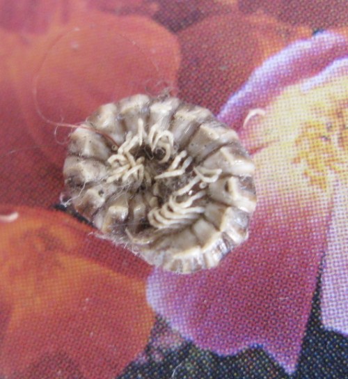 The Class name for these is Diplopoda, and they are part of the Arthropoda subphylum Myriapoda. They’re not insects, which are members of the subphylum Hexapoda. Also part of the Myriapoda are the centipedes, which are in a different class. The quickest way to tell the millis from the centis is to check out the legs (guess I’ve always been a leg man): centipedes always have one set of legs per body segment. There are about 1400 millipede species in the US & Canada. Is your skin crawling yet?