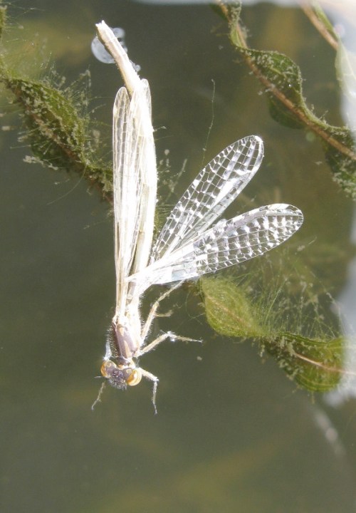 We saw our first damselflies Sunday at the Valley Water in Green-Wood. The very first one we noticed, alas, was dead. All four wings can be seen clearly here.