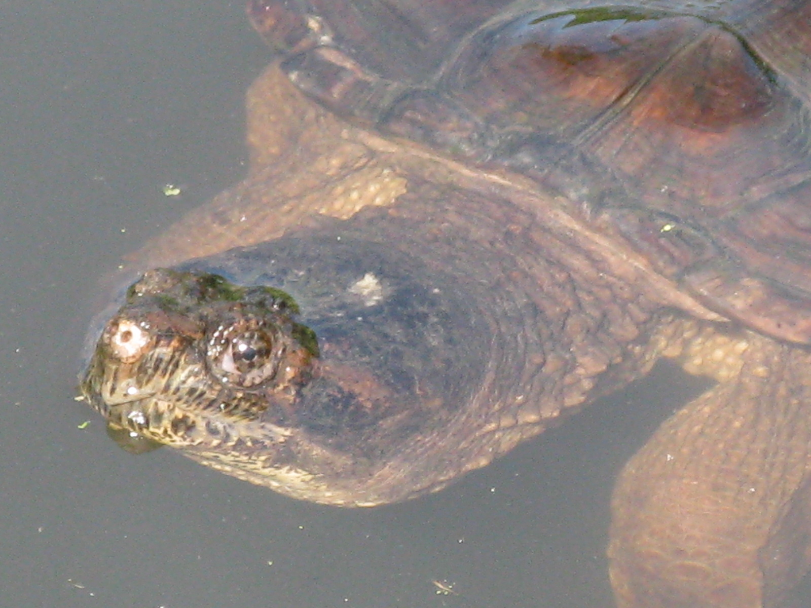 Ol’ Snap appeared. Not the kind of turtle to run when you approach.