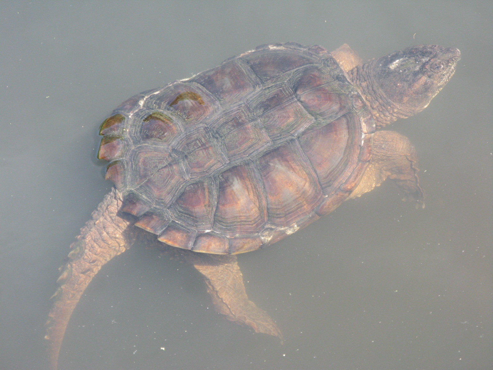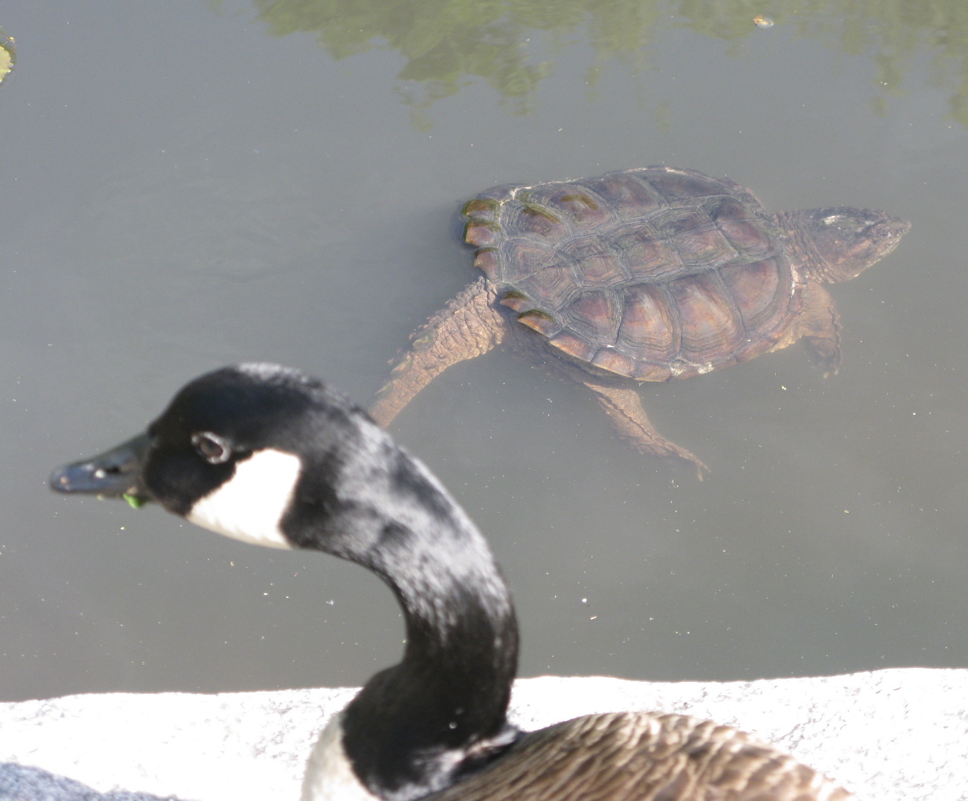 Chelydra serpentina has a fearsome reputation, but that’s probably just bad PR. (Duckling-centric PR, since they are in legend supposed to decimate baby ducks.) Still, you don’t want to get bit by the thick-necked beast.
