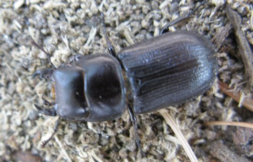 This stag beetle was on its back when I noticed it at the base of a tree. I helped it over.
