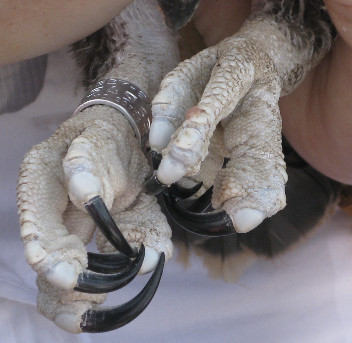 Osprey plunge down into ponds, lakes, and bays to snag fish with these amazing claws. Most perching birds have anisodactyl toes, a pattern of three forward and one rear, but osprey have zygodactyl toes, two forward and two back, the better for grabbing slippery fish. Osprey also have special pads that help maintain their grip.