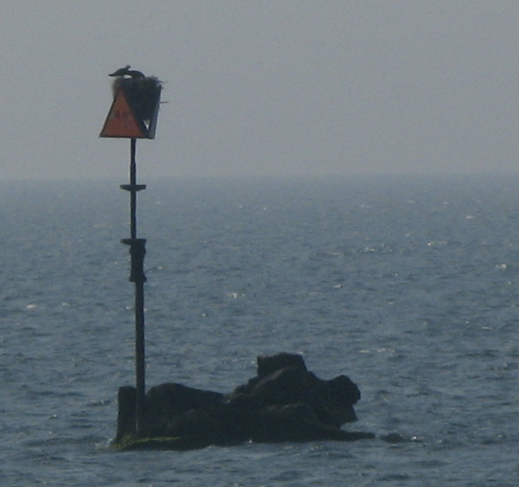 This nest site is just outside Lewis Bay in Hyannis, Mass., in Nantucket Sound; the image was captured as I took the “fast boat” back to the mainland. A marker for those nasty looking rocks, it’s an example of an unintentional nest site. Very familiar with osprey poles up and down the Atlantic seaboard, I’ve never seen an osprey nest “at sea” before.
