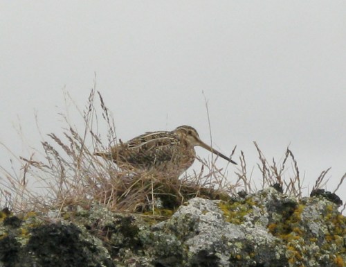 Small, furiously fast fliers, the snipe were usually seen above, going back and forth across the sky, then dropping suddenly in graceful free-fall curves. But they were generally heard overhead first. As part of their courtship and territorial rituals, the males extend specially adapted feathers on the side of their tail. These look a little like oddly placed legs through binoculars. As the birds descend, the air rushing through the feathers make a haunting sound. It’s known as winnowing, a sort of dry, drumming “huhuhuhu.” But transliteration of bird sounds rarely does justice to the original (I haven’t found a good clip on-line yet: the Wilson’s is rather different). It’s a very strange, stark, and beautiful sound. It’s like the land and the sky, indeed the world, is breathing. Frankly, it took my breath away, time after time.
