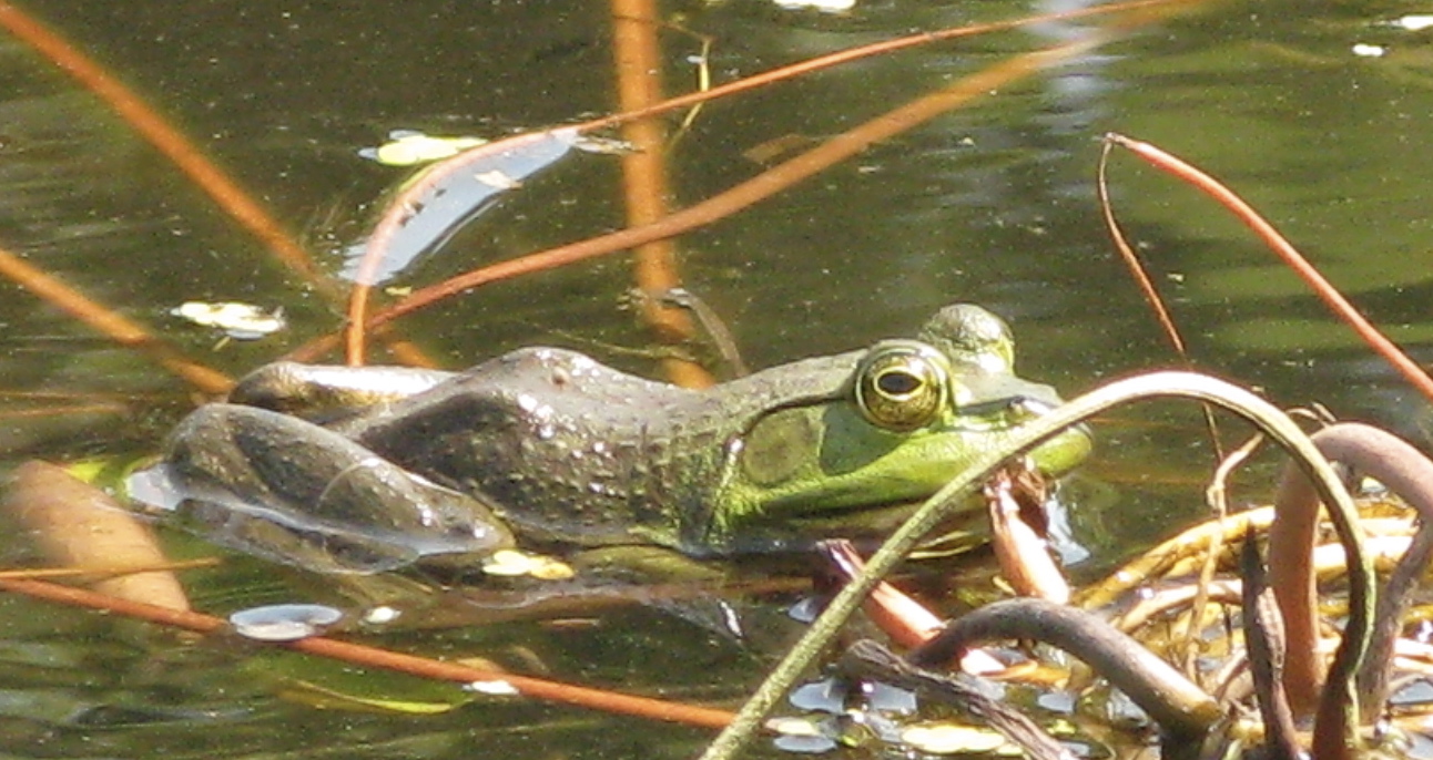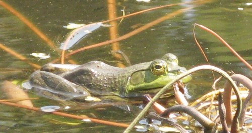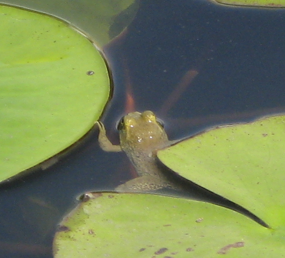 Cautious frog. I’m not sure of the species. The Valley Water has green frogs (big), bull frogs (bigger) and these guys (little), which may be young green frogs.