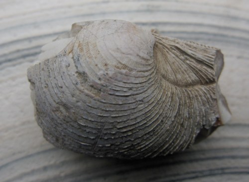 Clams add a new layer to their shells each year, so these are like the growth rings in trees. The earliest little nub of a shell, smaller than my pinky nail, is still here. This vestige is the umbo, or beak.