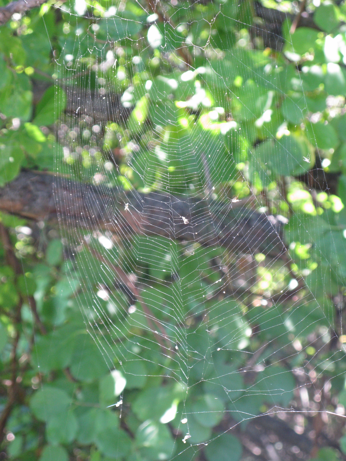 The main body of this web was over a foot across. Total length from anchoring strands above and below, approximately five feet.