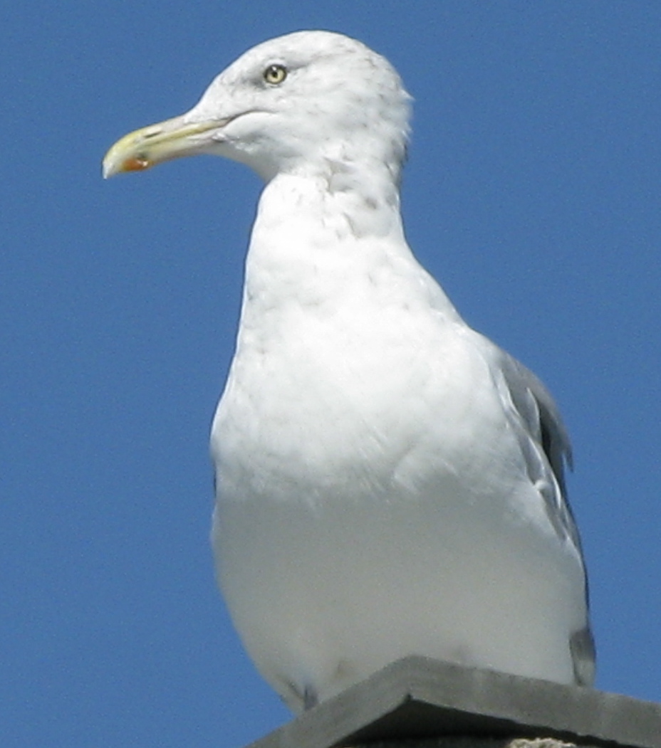 This is an American herring gull, Larus smithsonianus, photographed last month in Massachusetts. We see them in Brooklyn year-around.