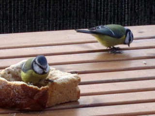 They’re Europan Blue tits, Cyanistes caeruleus (formerly Parus caeruleus). The photo was taken in Sweden, where even the birds have a strong social safety net.