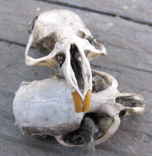 […] a-plenty, in fact, but no skulls. The last time I found a good patch of pellets, there were lots of skulls. Some owls will eat the head first, then the body later. Inch scale here.And this one with the long […]