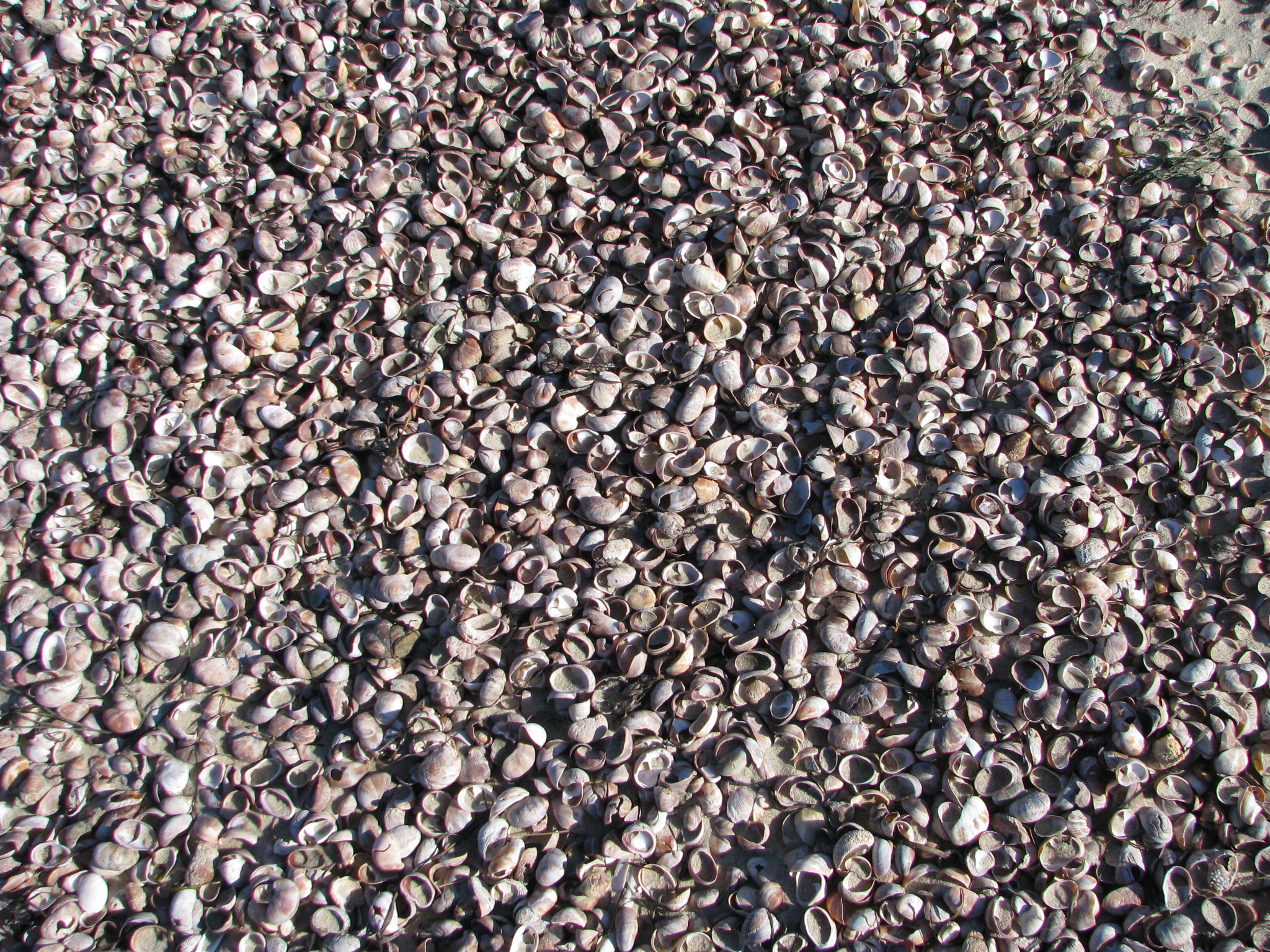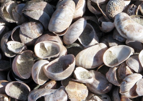The Common slipper shell, Crepidula fornicata, a.k.a. boat shell, a marine gastropod, or snail, pilled up at the Jetties on Nantucket. A not particularly rocky area, the island’s surrounding waters present less than enough bases for these snails to attach onto, so they often attach to each other, in chains. The species name comes from the Latin fornix, meaning arched chamber, the same root as fornication.