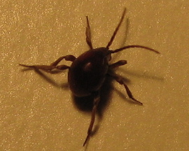 This is a spider beetle, a member of the family Ptinidae; there are about 50 species in the U.S., mostly in the Southwest. But wait, a spider beetle? Does that compute? Spiders, you’ll remember, aren’t insects. There are all sorts of differences, but, most obviously, insects have six legs, and spiders and other arachnids eight. So this six-legged creature is very much an insect, but its arachnid-like oval body — to me it’s more reminiscent of a tick than a spider — gives it its common name. Note those long, segmented antennae; how very like a beetle.