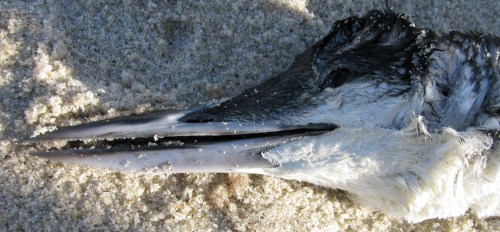 The winter beach can be an unforgiving landscape, scraped by the wind and beaten by the waves. There are almost always dead sea birds to be found washed ashore.