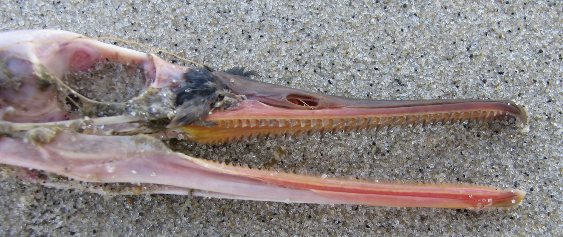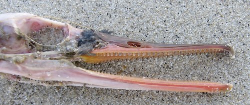 This red-breasted merganser was on its way to being thoroughly recycled. Note the serrated jaws here, a characteristic of the species notably lacking in the loons. You can often see red-breasted mergansers in the East River this time of year; look for loons off of Brooklyn’s south coast and the Rockaway Peninsula.