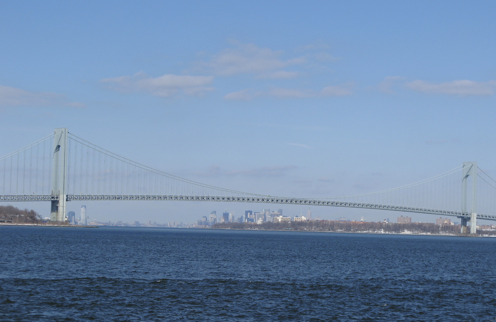 We then went up towards the Staten Island tower of the Verrazano to see what was hugging the shore south of Fort Wadsworth. Numerous ducks, as it turned out, digging the cold water, and a few more seals. The trip was longer than scheduled, so we really got the “three hour tour,” minus the Professor and Mary Ann. The weather was sunny, the water fairly calm, the day absolutely gorgeous. There was an edge to the wind, but the sun warmed us through and through.