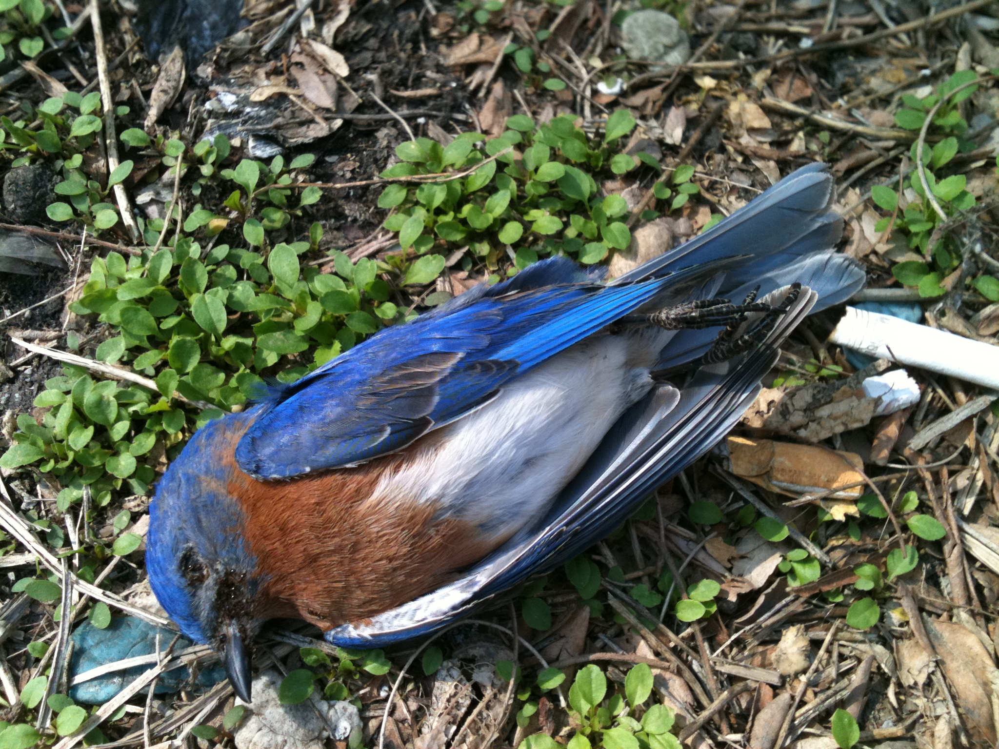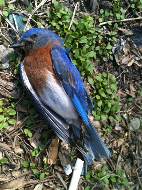 My friend Cathy has been finding dead birds in the Windy City, victims of high-rise glass towers and bright lights. The migration seasons in particular takes an enormous toll. Here’s some more information about how skyscrapers kill and what can be done about it. This is a picture she sent me: it’s an Eastern bluebird, Sialia sialis – to my mind one of the most beautiful birds in North America.