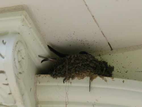 Barn swallows nesting on the Boathouse. This is one of several you can see there now. They make their nests out of mud pellets.