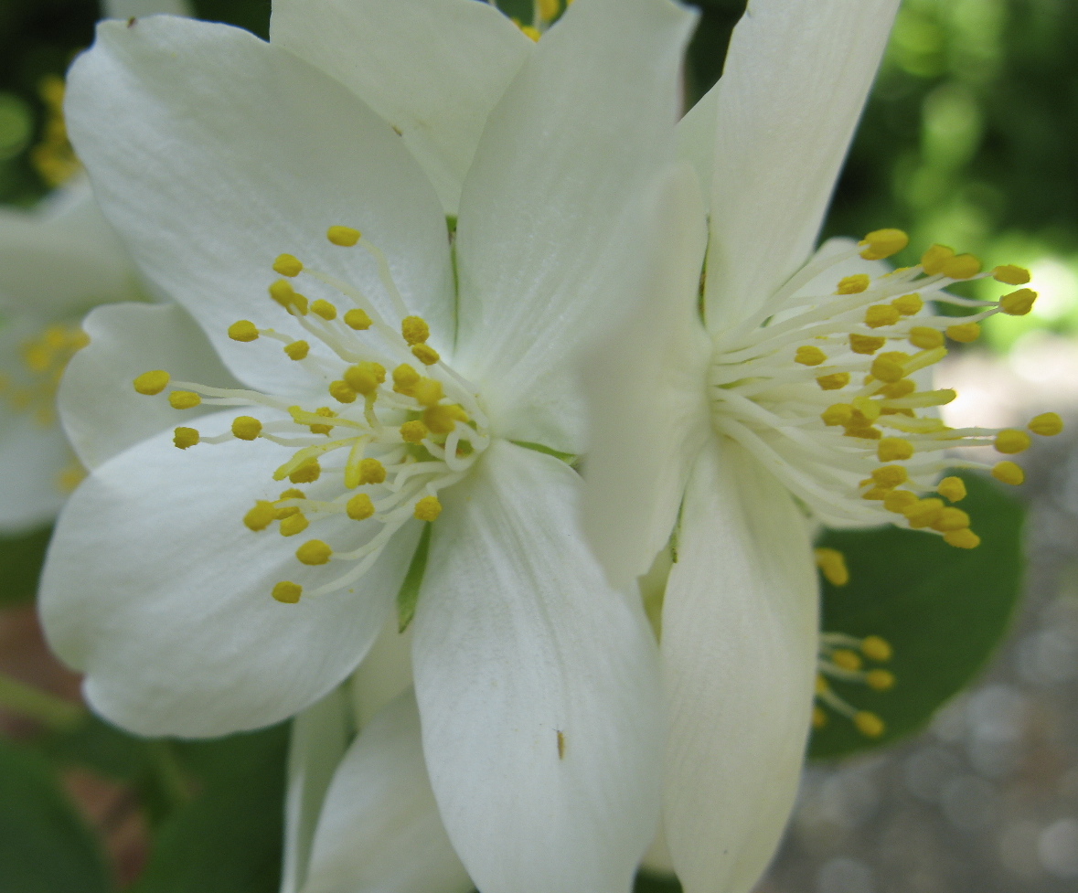 A walk in Prospect Park never fails to turn up something exciting in the animal/vegetable/mineral kingdoms, even if I’m paying more attention to the conversation. When the conversation is with NYC Wildflower Week’s Mariellé Anzelone, there’s plenty to learn. For instance, I think I can now actually name the two flowers pictured here. That’s one of the mock oranges above (genus Philadelphus) and the purple-flowering raspberry, Rubus odoratus, below.