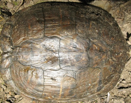 The scutes will often last a very long time. The other, above, still had a bit of the leather of the neck and feet but was hollowed out inside. The digesters of life seem to have a hard time with turtle skin, since I’ve found them like this before.