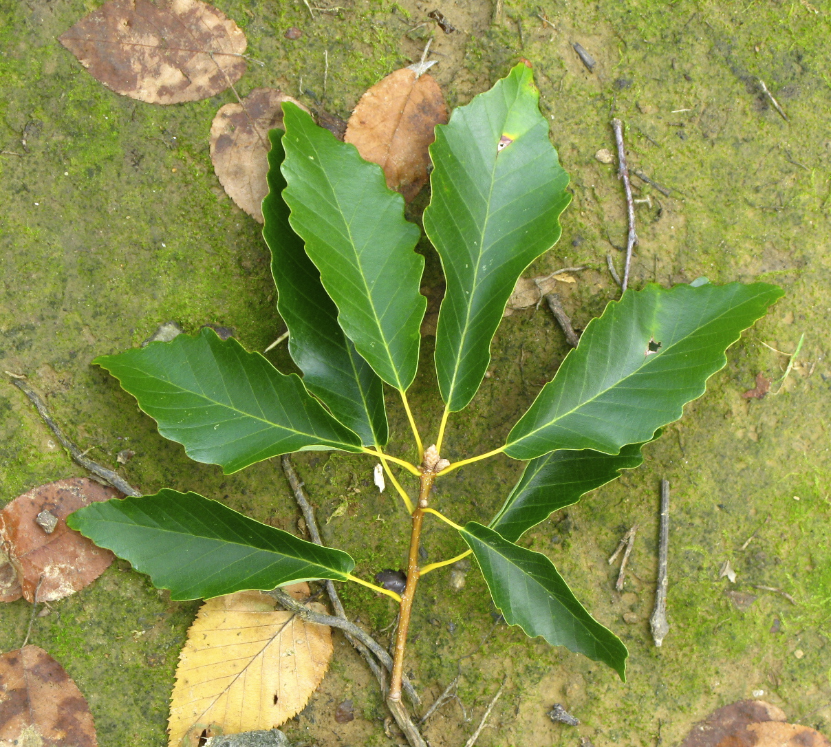 We wandered around examining the ground and the canopy, calling out our finds, photographing the same things: delicate coral-like fungus, fungus growing on fungus, many more mushroom species than I’ve ever seen in the same location. At least four kinds of galls. Generations of broken glass. The screeching of blue jays, the patrolling of squirrels. Chestnut oak. Witch hazel. Low-bush blueberry. Woodland aster. Beech. Dime bags.
