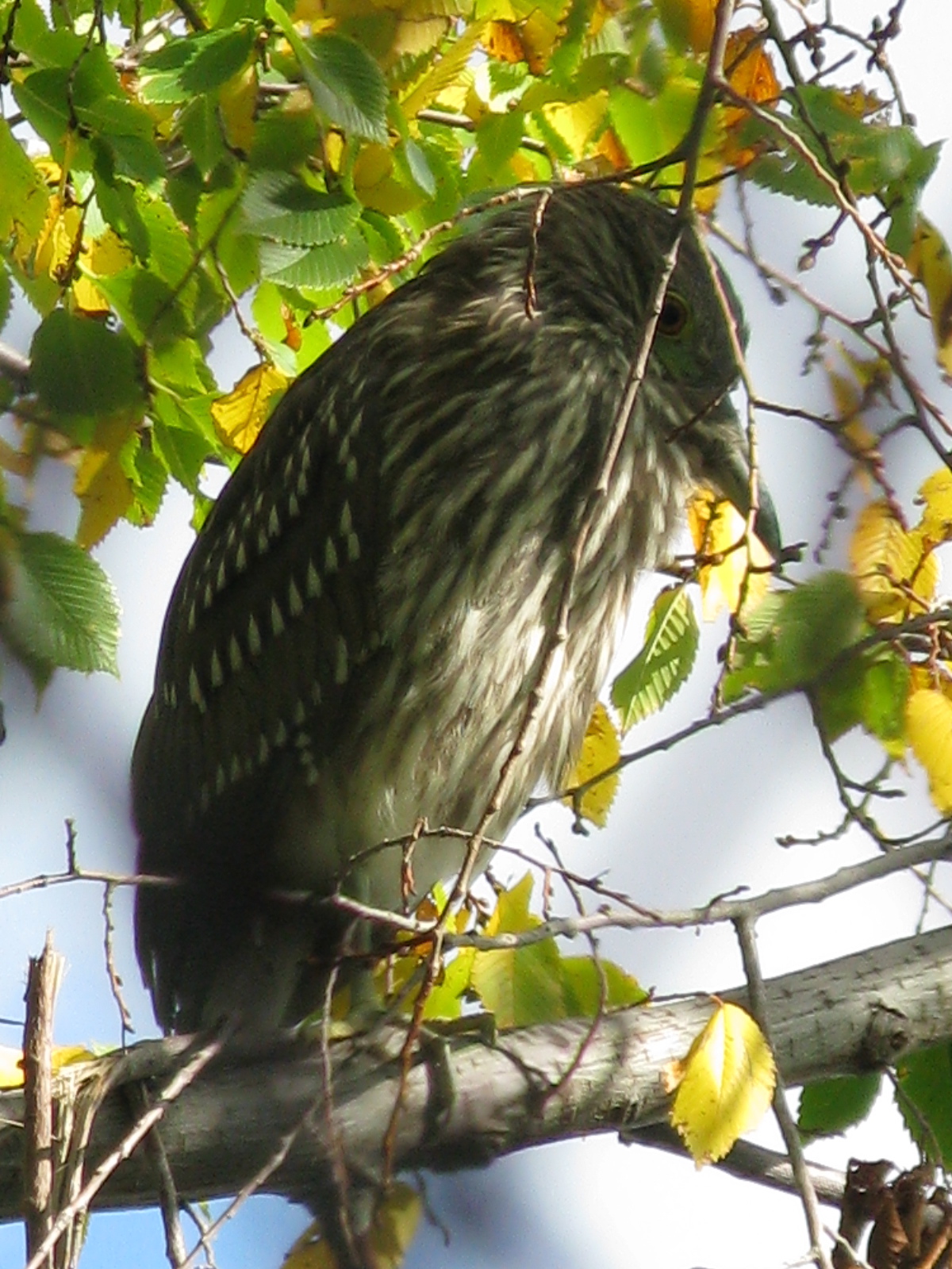 A juvenile Night Heron, hanging out above the Brooklyn Navy Yard. Odd. But these young punks, what do they know?
