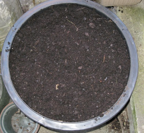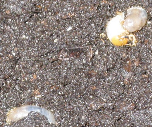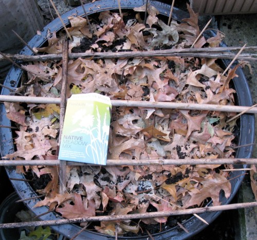 The Staten Island native meadow mix bed. This is my biggest pot; like most everything in my backyard, it was found on the street and recycled. While moving some soil, I found a number of grubs who had buried into the earth for the winter: