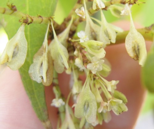 Poking through the fence, these knotweed seeds tell you why they’re such a successful spreader: lightweight, winged, and ready for the wind.