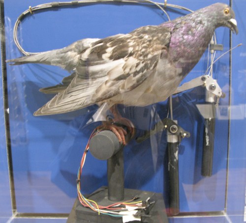 The human/nature… intersection? continuum? state-of-being? Whatever you want to call, it certainly is. What it means here on this blog is that I always keep a weather-eye out for manifestations when I’m up to other things. So, checking out the new museum at the Brooklyn Navy Yard, I found this Henson Creature Shop animatronic pigeon. It was used in the movie The Producers (the remake.) There must some be real feathers incorporated, because otherwise that iridescence in the neck is hard to reproduce.