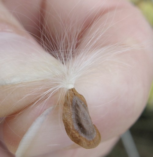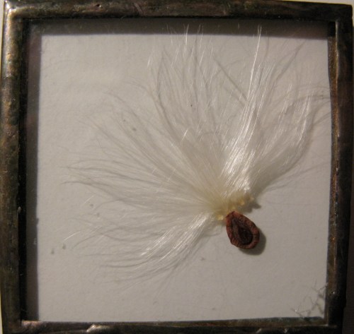 This is the seed of a milkweed, several different species of which are found in Brooklyn Bridge Park. According to this site, it’s a parachute seed, one of seven different wind-dispersal types.