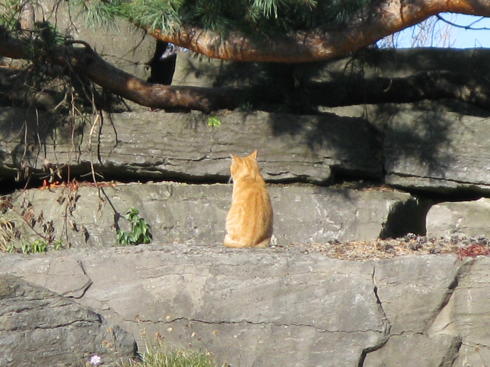 Le chat orange dans le Jardin alpin.