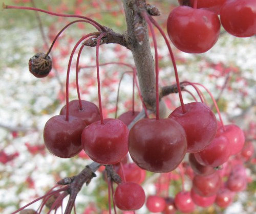 These cherry-red and -sized crab apples were in the Pommetiers section of the Arboretum.