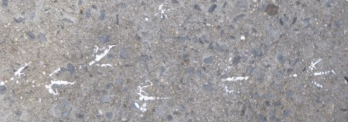 A large paint spill on the Congress Street sidewalk. Perhaps the bicycles wheels zooming through it and down the block weren’t that surprising, but at least two people tracked through it as well. I wonder if this pigeon thought it was food?
