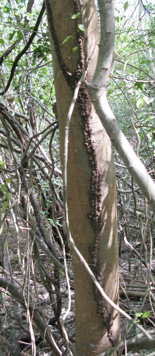 These critters do not like the light: they even turn their trails into tunnels, as this one, snaking up a tree: