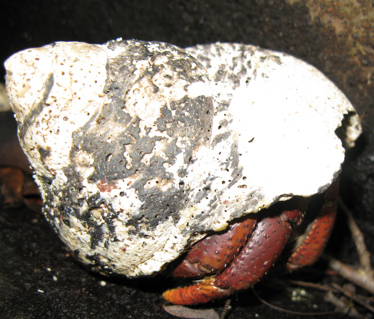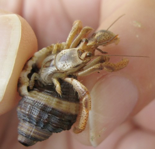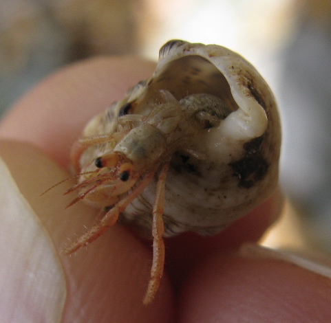 Hermit crabs range from these little guys, scavenging the back end of rocks along the shore