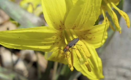 and several of these Red-necked False Blister beetles (Asclera ruficollis – h/t to Bug Guide) were sticking to them.
