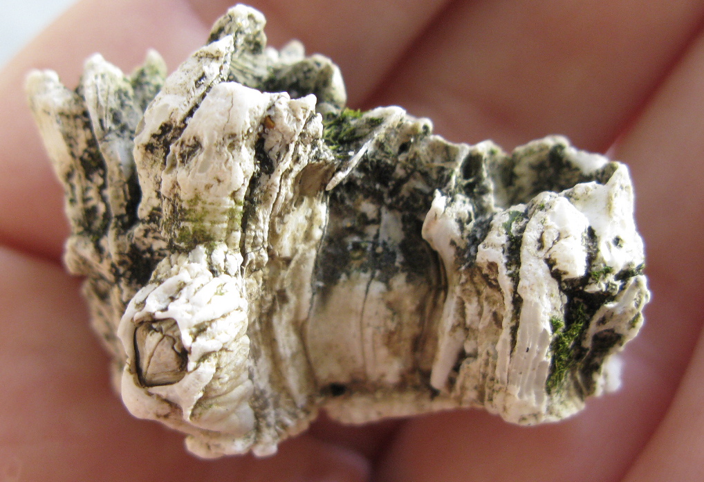 A piece of barnacle conglomeration I found at Dead Horse Bay recently. Most species of barnacles need a surface to attach to, and sometimes that surface is other barnacles. These are a type of acorn barnacle, one of the two main groups. I understand differentiating the local species is difficult for the lay person. Give a shout if you know them on sight. Commonly seen species in the region are the Ivory barnacle, Balanus eburneus, which prefers less saline water (like Jamaica Bay, so this may be that) and the Northern rock barnacle, B. balanoides, which likes it saltier.