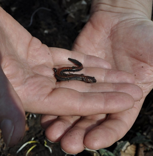 When this particular Red-backed salamander curled into a ring in the palm of my hand, I thought of Ouroboros, the mythic serpent or dragon that swallows its own tail, a symbol of eternity and infinity, a symbol of the cycles of the natural world.