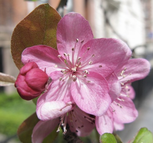 The two crab apple trees on my block are now blooming. Title riff: “Rough winds do shake the darling buds of May” ~ Shakespeare, Sonnet 18.