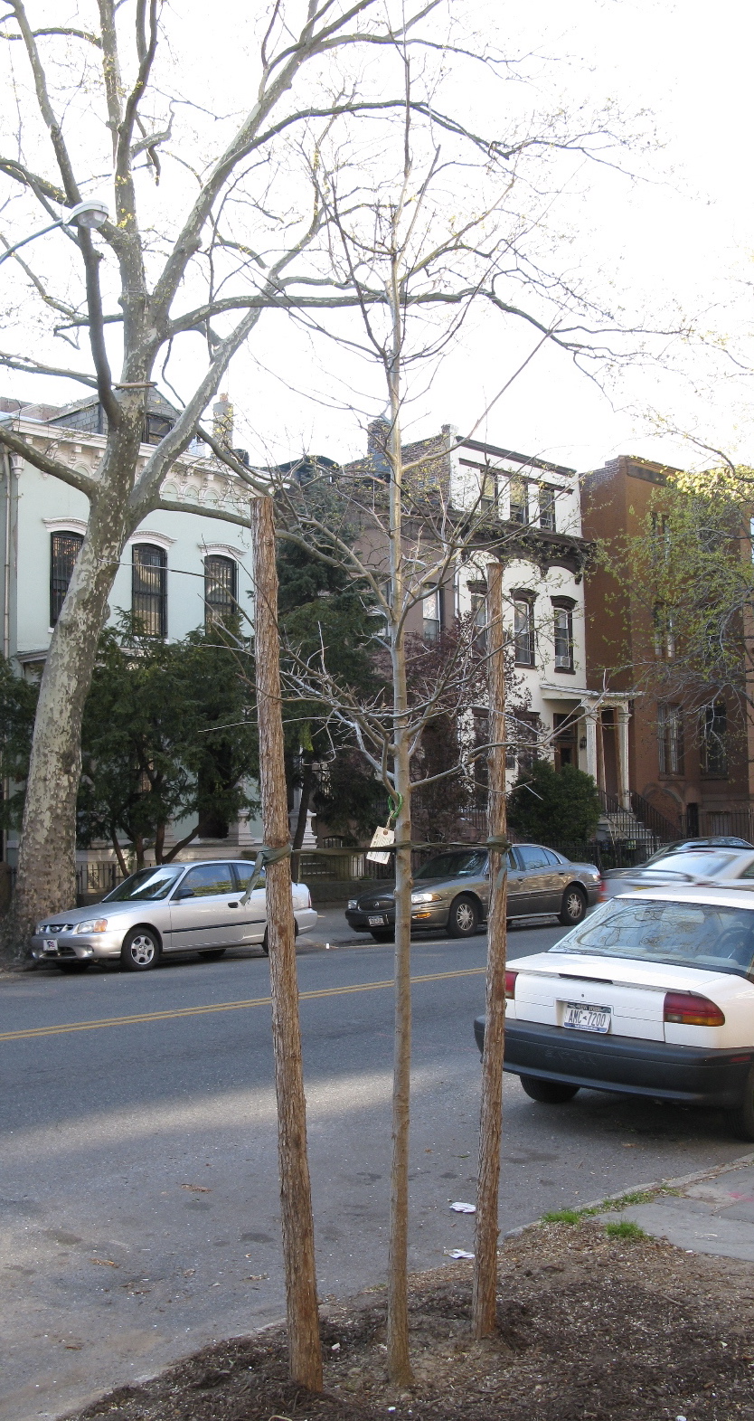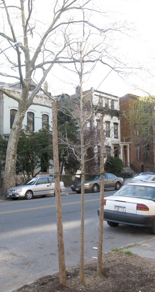 With all the new trees planted around the city, there’s just a lot more eye-level detail to be seen. As the trees bud out into leaves and flowers, we can get a lot closer to these saplings than we can to many a tall, trimmed up, mature tree. These pictures were all taken along two blocks of Washington Avenue in Clinton Hill.