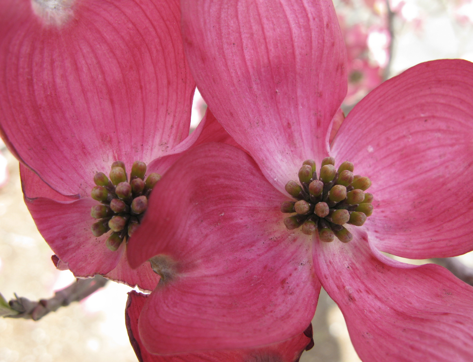 Flowering Dogwood (Cornus florida) on Van Brunt St. The flower-like petals of this species (and Kousa and Pacific dogwoods) are actually bracts, or specialized leaves; the flowers are the little buds clustered in the center.