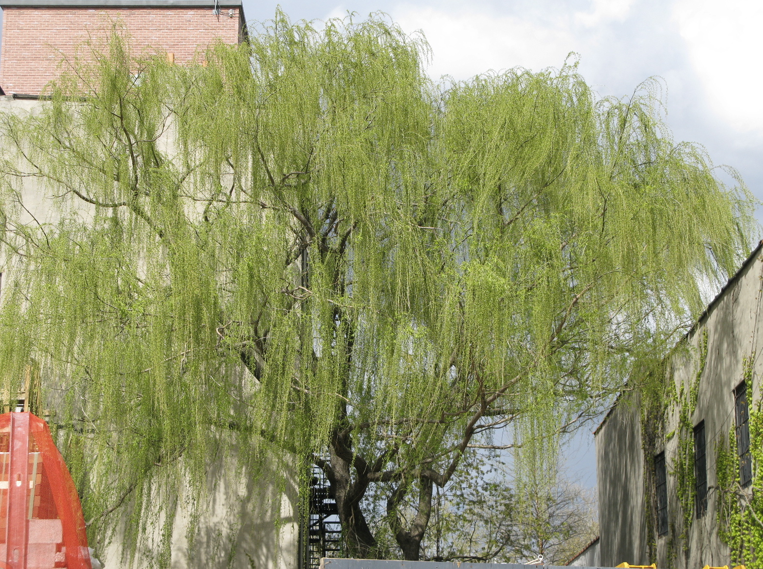 The “weeping willow” is one of those trees most of us can identify. Often associated with water bodies, it is distinctive. In my experience, the East Village is a good place to find them, often dominating community gardens. Columbia St. (above) and Red Hook (below) are good places to spot them in Brooklyn. All of these neighborhoods are low-lying — Red Hook was an island at high tide back in the day (way back in the day), and the East Village was infamously built on very soggy ground.
