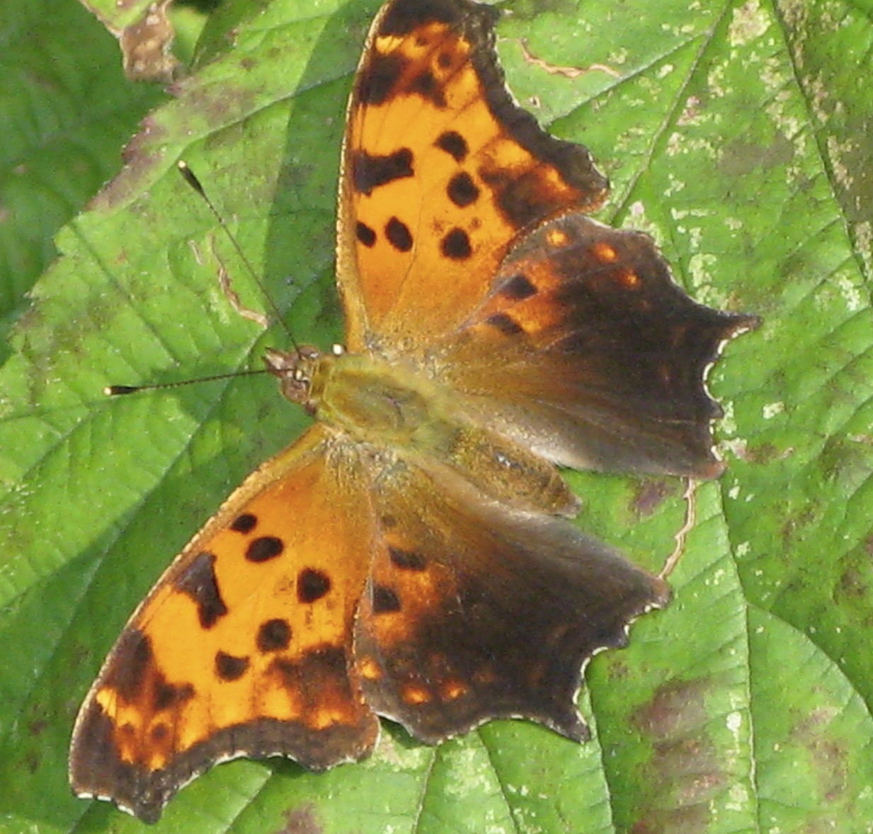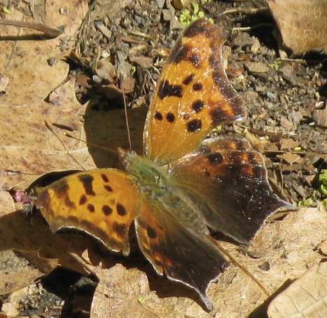 Question Mark butterfly (Polygonia interrogationis), as punctual a name as the very, very similar Eastern Comma (Polygonia comma):