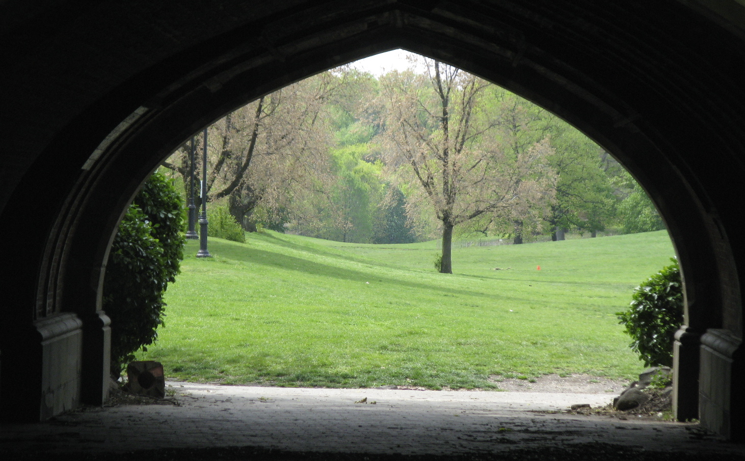 It’s unusual to see the Long Meadow empty in the middle of the day. Do you feel drawn into the green? The Endale Arch is designed to do that, leaving the horse-shoe clattering, horse-dropping piled city behind you.