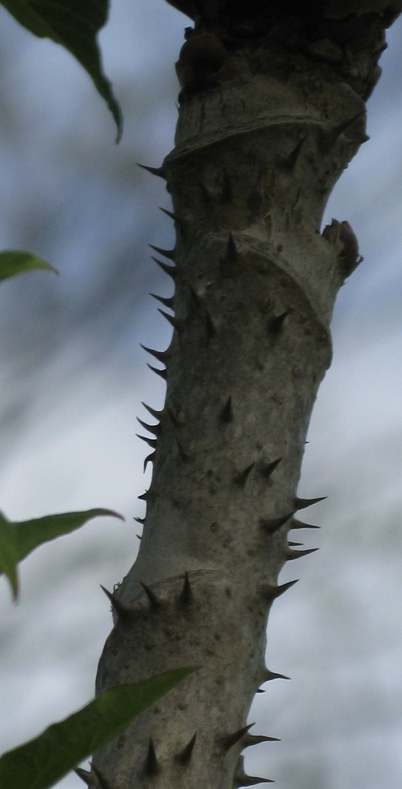 UPDATE: Or maybe it’s Aralia elata, the Japanese Angelica tree that is very similar, and in the same genus, and invasive. Reader Jessica (see comments) suggests further study is needed.