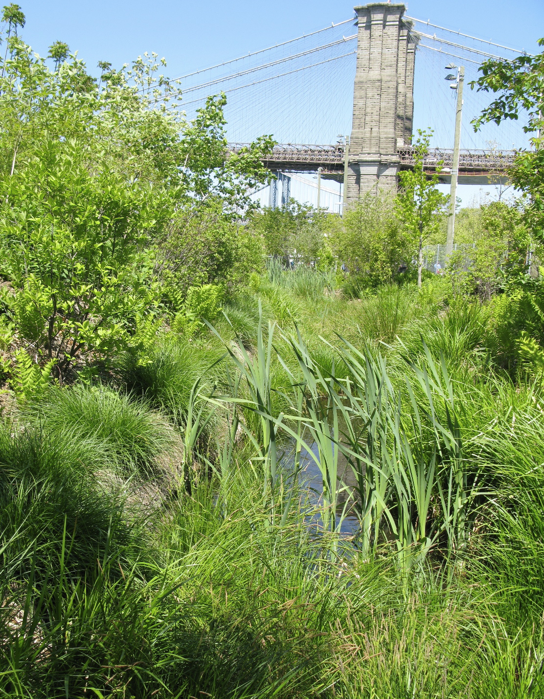 A bridge passes over it.