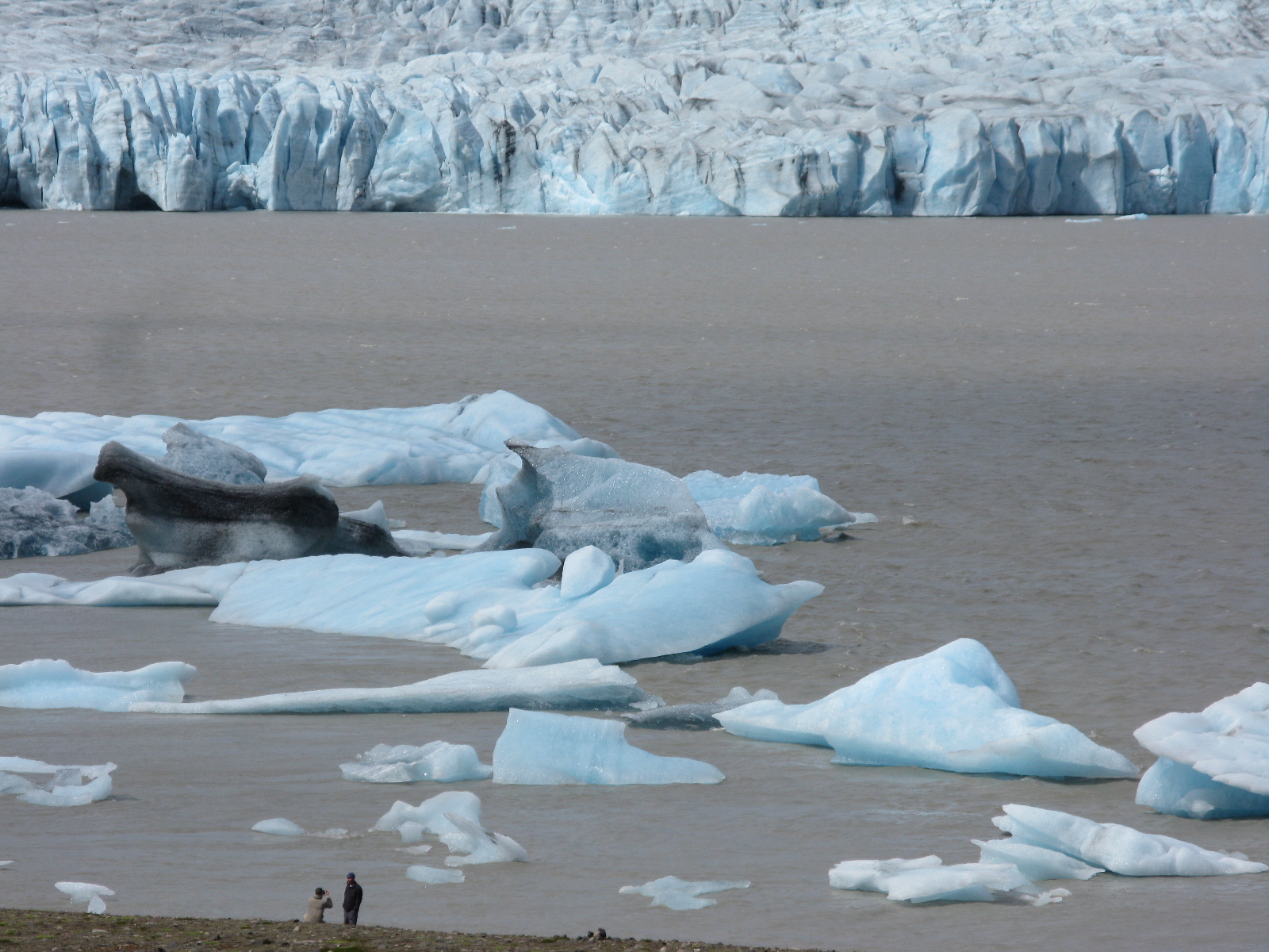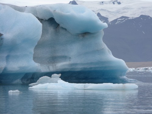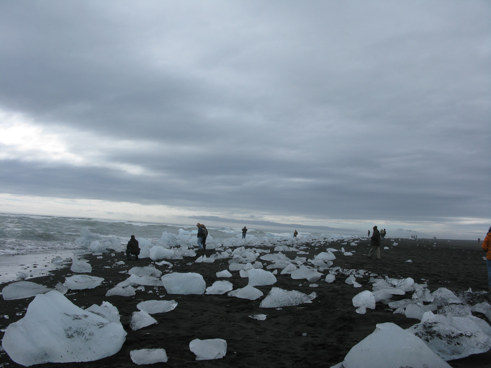 The ice calved off of into the Jökulsárlón lagoon in Iceland is pulled out a narrow channel by the tide into the North Atlantic. Then it is pushed back onto the black sand beach by the waves, and battered and whittled away by the water.