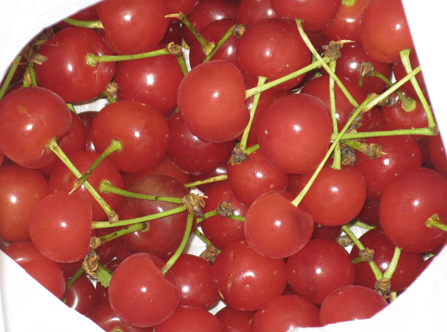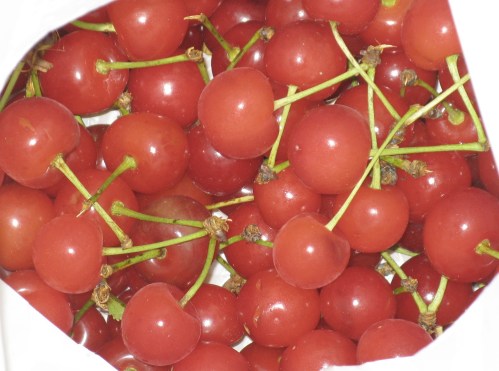 Other places were not so lucky: this year’s tart cherry harvest in Michigan, New York, and Wisconsin, for instance, is expected to be the smallest ever. I bought farmer’s market sour cherries, as I generally know them, the other day for $4/pint; they were from New Jersey. BTW, if you’re not familiar with this type of cherry, also known as pie cherries, which have a brief season and limited vendors (most people, who know no better, want the sweet ones, which tend to be rather insipid), you must seek them out: they are ones you bake with, make cordials out of, etc.